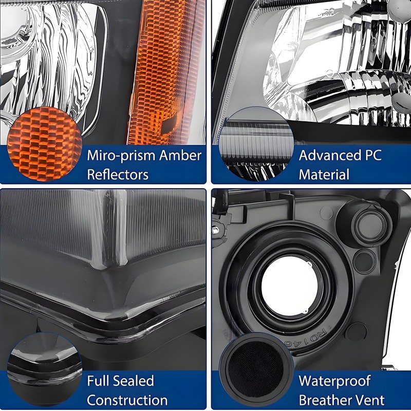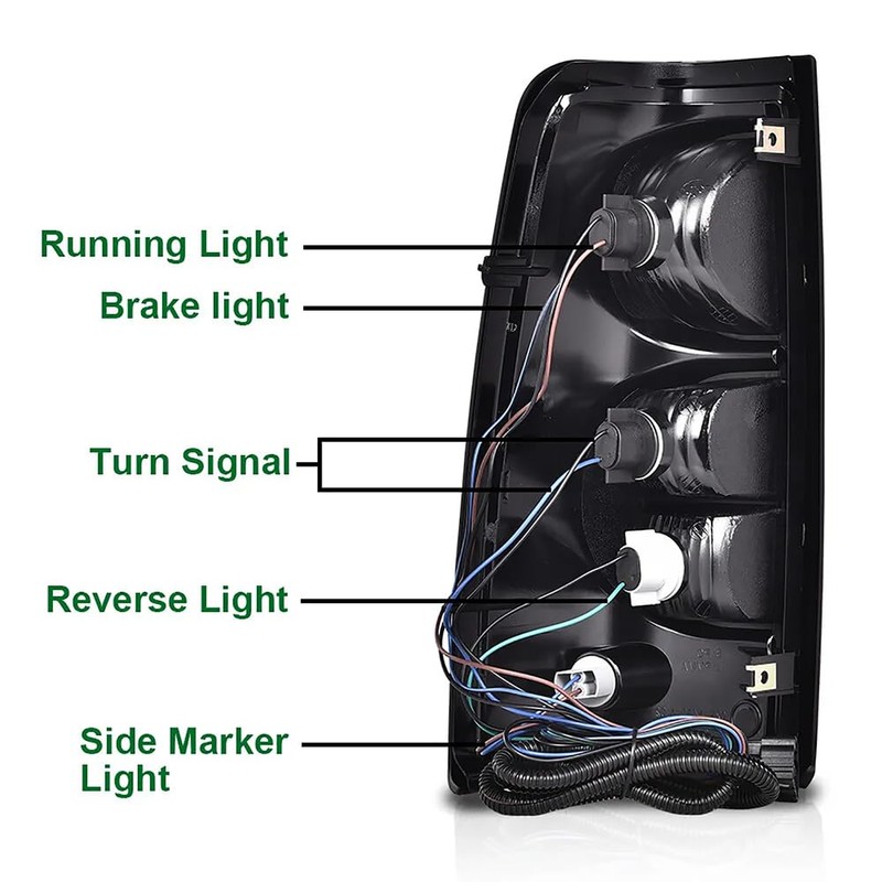 - 【Package】 1x Pair Headlights(Bulbs are not inlcuded), 1xPair Taillights (Include the Wiring harness and Bulbs)