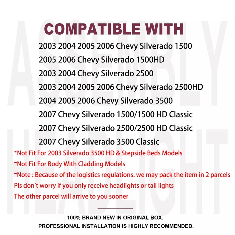 - 【FITMENT】 Compatible with 2003-2006 Chevy Silverado 1500 2500 3500& HD Models/for 2007 Chevy Silverado Classic