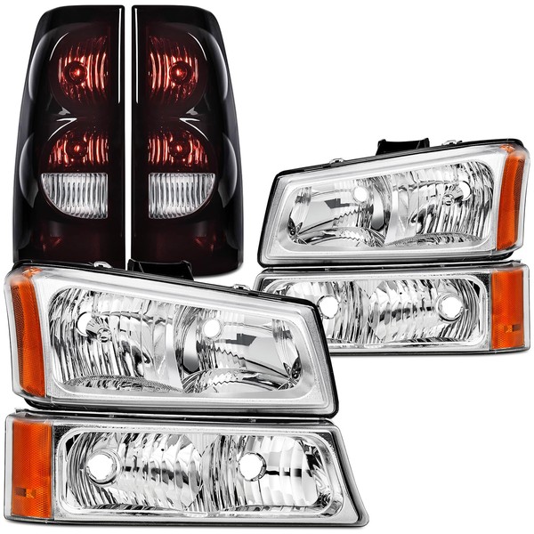 Headlight Assembly Tail Lights Combo Kit For 2003 2004 2005 2006 Chevy Silverado 1500 2500 3500& HD Models/for 2007 Chevy Silverado Classic Headlamp Rear Replacement Brake Lamps Smoke Taillight