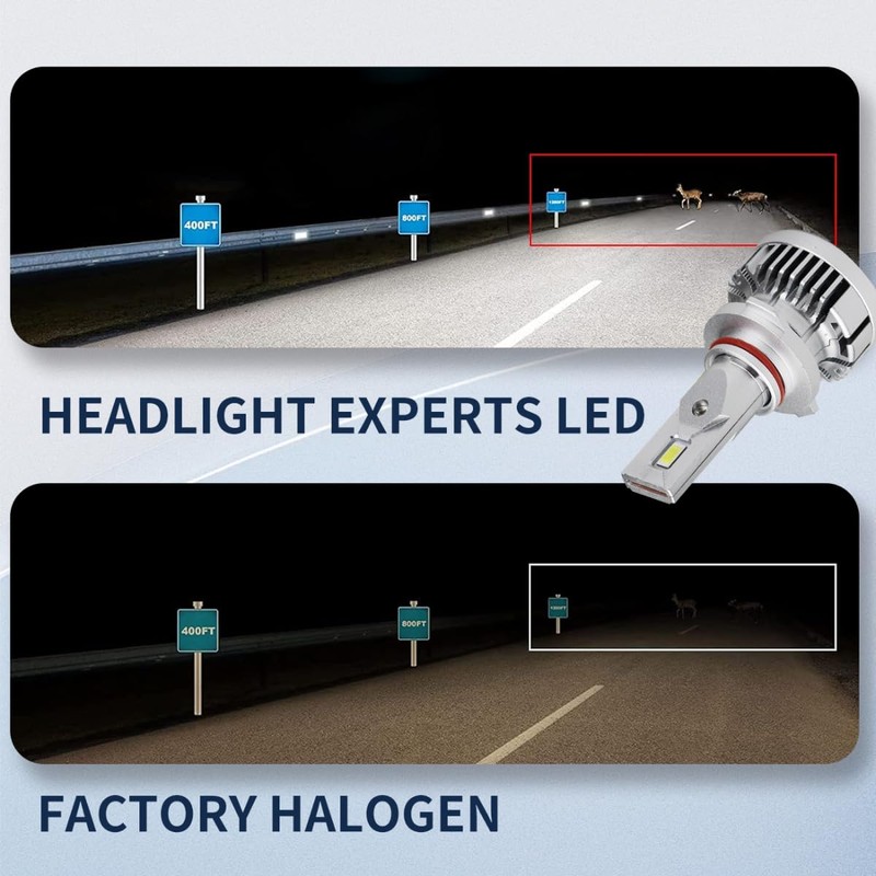 - 【600% Brighter Than Halogen】- Top Automotive-Grade chips with a REAL 22000LM per pair, 6000K color temp. Factory focused beam pattern design provides wider and farther lighting range which is 6 times brighter than your original halogen bulb. Made for your factory assembly.