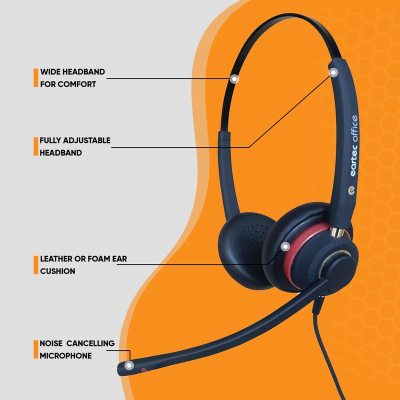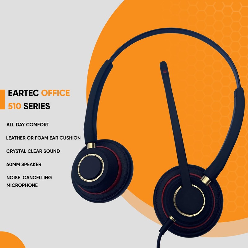 - BEST HEADSET IN ITS CLASS: The eartec office 510D headset is designed to work in a more testing environment. The metal encased headband is wider than normal and the microphone boom is stiffer giving you more durability. Big ear pad and plush soft protein leatherette ear cushion ensures whole day wearing comfort. Ratchet style microphone boom, easy to be adjusted, luxurious soft designed T-Pad for convenient wearing. Click-stop headband for superior comfort.