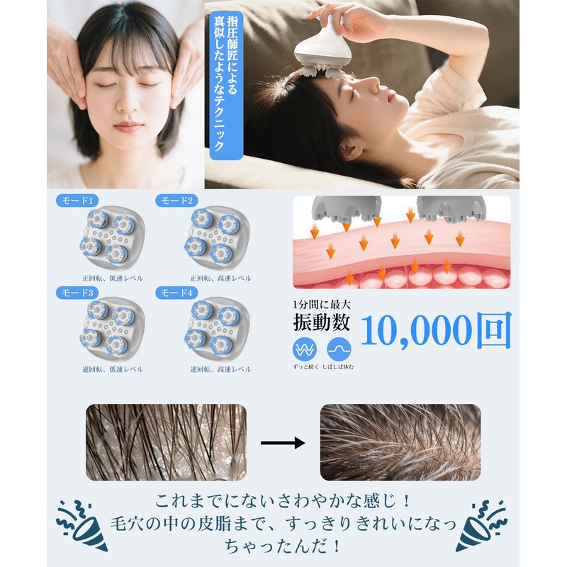 Headspa Electric Scalp Brush, IPX7 Waterproof, USB Charging 04