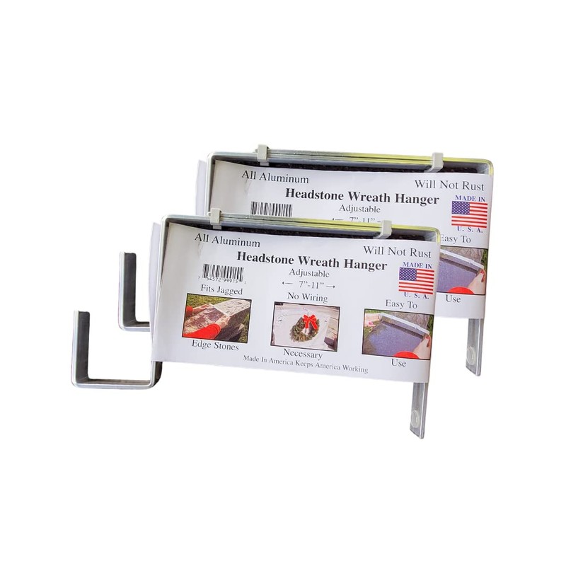 Headstone Wreath Holder Hanger 2-Pack, Solid Aluminum, Adjustable, Will Not Rust, Made in USA