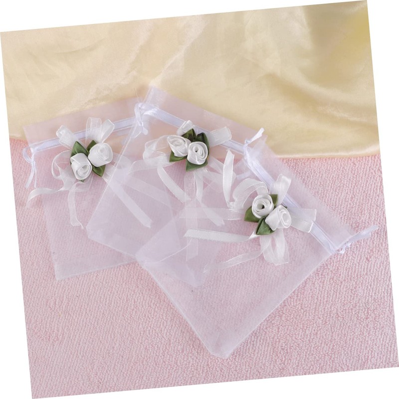 Healeved 36 Pcs Mini Bag Mini Candy Bags Flower Gauze Pouch Gauze Bag Gauze Packing Bag Candy Bag Net Yarn Gauze Candy Bag Net Yarn Storage Bag White Cloth Bag Drawstring