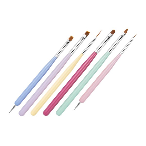 Healeved 6pcs Dual-ended Nail Art Brushes Macaron Style Manicure Pens for Nail Design Compact Storage for Professional and Home Use