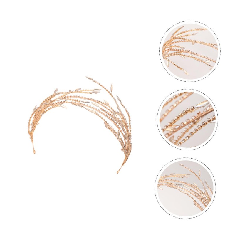 Healeved Diadema Dorada De Boda Para Novia Diadema Dorada Diadema Nupcial Diademas De Diamantes De ImitacióN Para Mujer Accesorios Para Fotografia Accesorios De Novia Tocado
