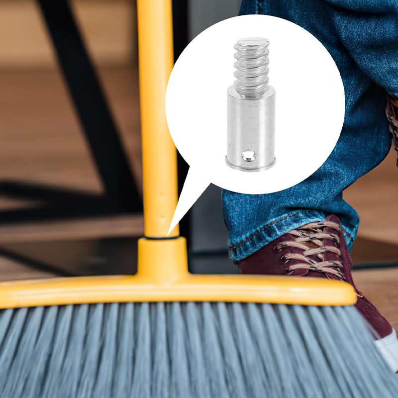 Broom handle tips. The threaded end of the broom handle has a thread design that can be easily attached to the mop head and mop rod, making installation quick and easy. Broom handle attachments. The threaded tip is made of an aluminium alloy material that protects against rust, cracking and breakage, no deformation, with durable service life