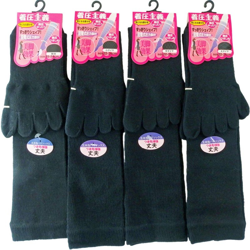 Healing Feet 17055-994-950 Women's Compression 5-Toe High Socks, 4 Patterns, 1 Pattern & 1 Pattern, 17055 solid