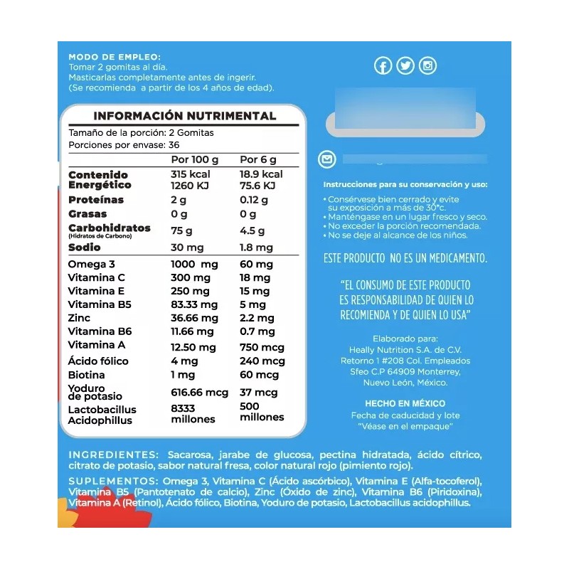 - 🍓 Fácil y delicioso de tomar: Presentación en gomitas con sabor agradable, ideal para los más pequeños.