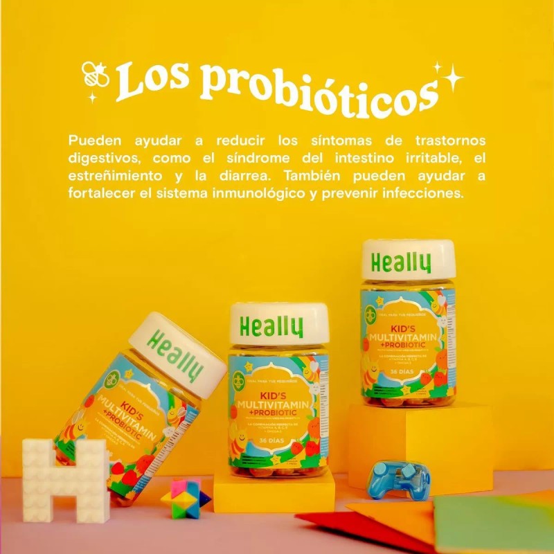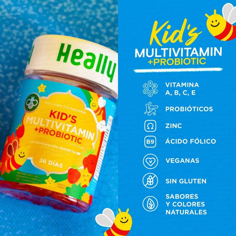 Heally Multivitamínico para Niños es un suplemento en forma de deliciosas gomitas diseñado para brindar los nutrientes esenciales que apoyan el crecimiento y desarrollo infantil. Su fórmula equilibrada proporciona vitaminas y minerales que refuerzan el sistema inmunológico, promueven la salud ósea, estimulan la función cognitiva y aportan energía diaria. Con una presentación práctica y un sabor irresistible, es la opción ideal para complementar la alimentación de los más pequeños de manera fácil y divertida.