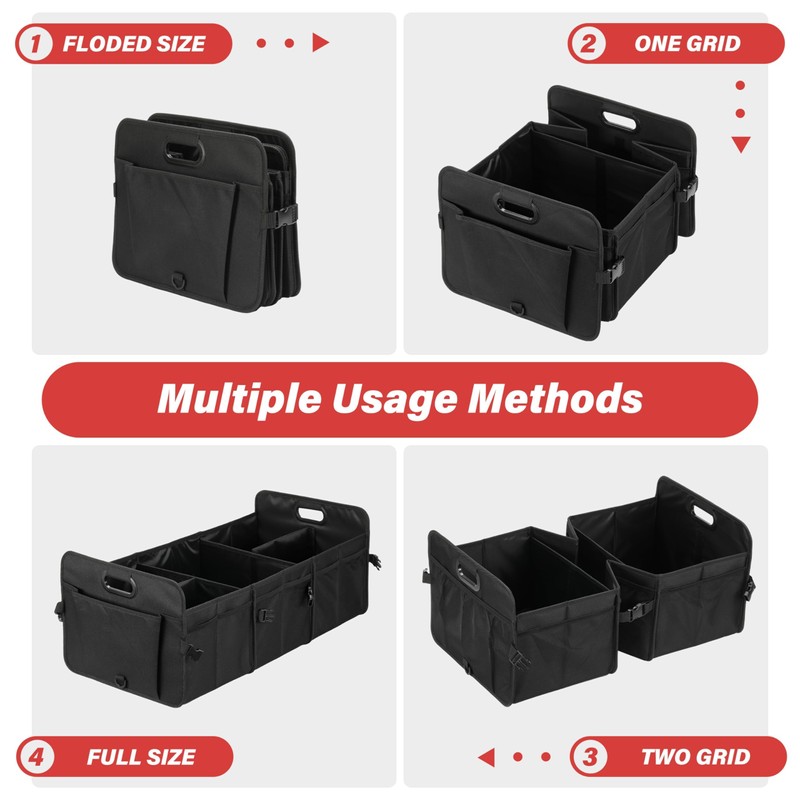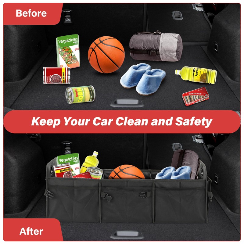 - Multi-Purpose Organizer: More than just a car trunk organizer! Use it to sort tools, books, toys, sports gear, or emergency supplies. Doubles as a sturdy shopping tote—fold it up when not in use for compact storage.