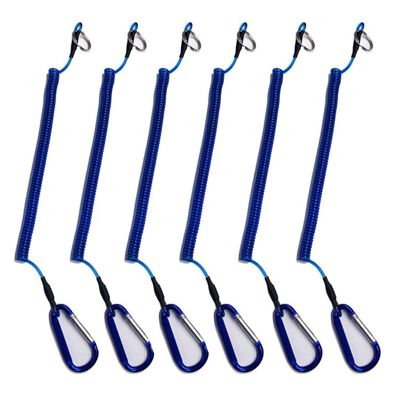 Health Ceremony Safety Wire Cord Set of 6, Aluminum Carabiner, Shoot Rope, Safety Cord, Wire Key Chain, Drop Prevention, Strap, 6 Pieces, Stainless Steel Wire, Maximum Extension 3.9 ft (1.5 m), Spiral