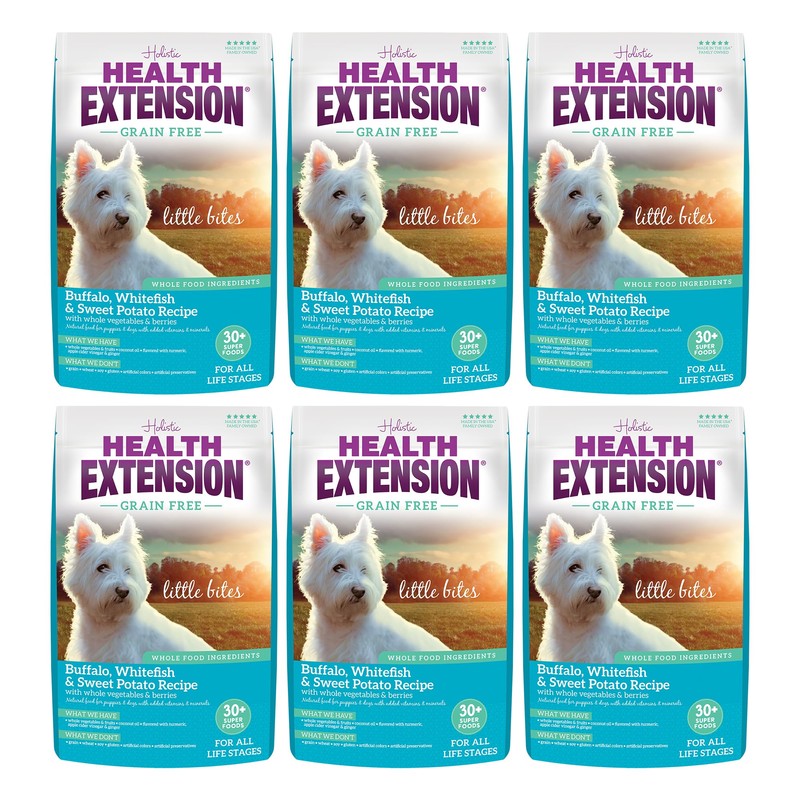 Health Extension Grain Free Buffalo & Whitefish Little Bites (1 lb / 0.45 kg) - Small Kibble Formula with Omega 3 & Whole Foods for Teacups, Toys & Miniature Dogs (Pack of 6)