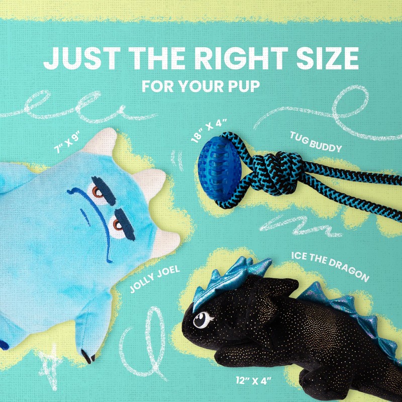 - Durable Play Bundle: Includes Ice the Dragon, Tug Buddy, and Jolly Joel, all crafted for long-lasting fun and rough play.