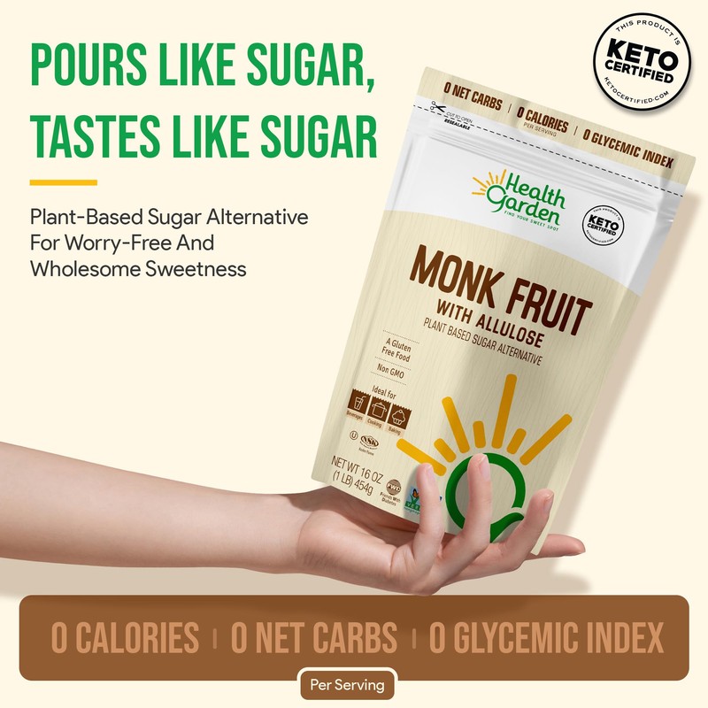 Health Garden Monk Fruit with Allulose Sweetener - Natural Plant-Based Sugar Alternative with Zero Calories - Ideal for Keto Diets, Gluten-Free, Vegan, and Non-GMO - 2.5lb