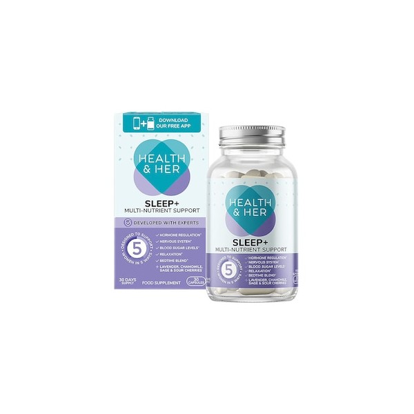 • The Health & Her Sleep+ Supplement is designed to support a restful night for women currently undergoing hormonal changes.