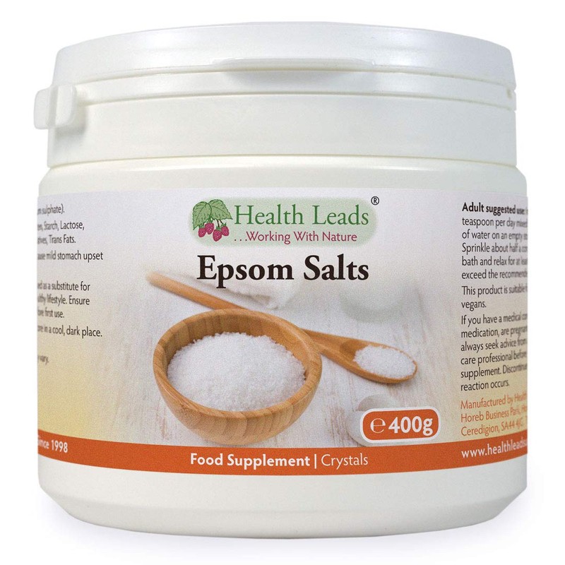 Health Leads ...Working With Nature Pure, Food Grade Epsom Salts, Magnesium Sulphate, Vegan, Non-GMO, Widely Used to Help Relax Aching and Tired Muscles After Sports and Exercise, Resealable Container, Easy to Use (400g)