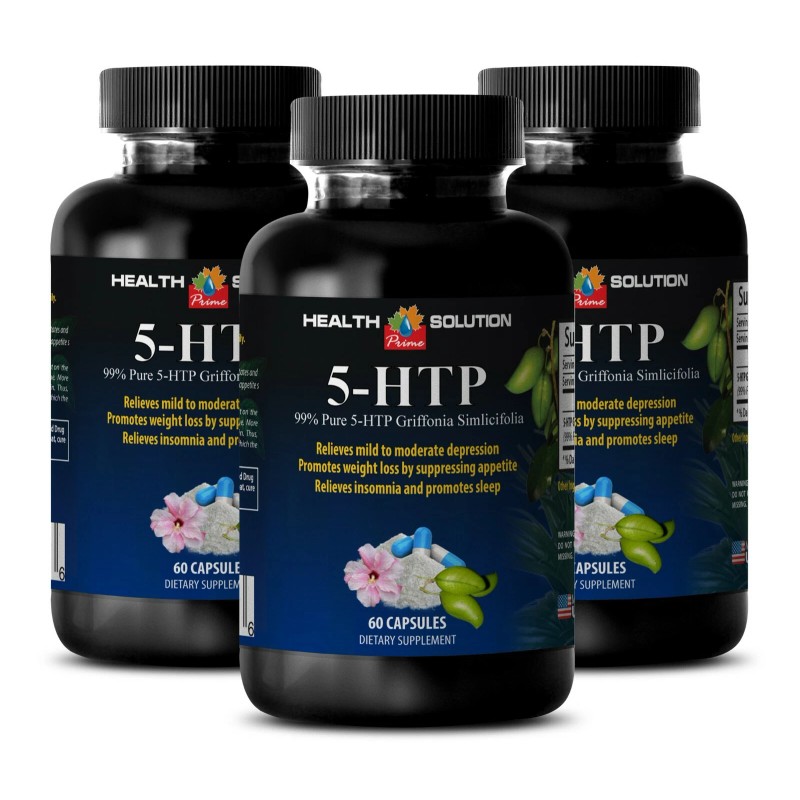Health Solution Prime USA Restful Nights - 99% Pure 5-HTP Extract - Stress Aid 3 Bottles 180 Capsules