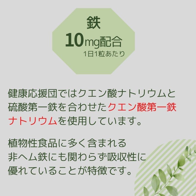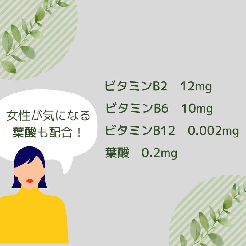 • ●主原料原産地:日本●規格成分(1日目安量中):鉄10mg、ビタミンB2 12mg、ビタミンB6 10mg、ビタミンB12 0.002mg、葉酸 0.2mg