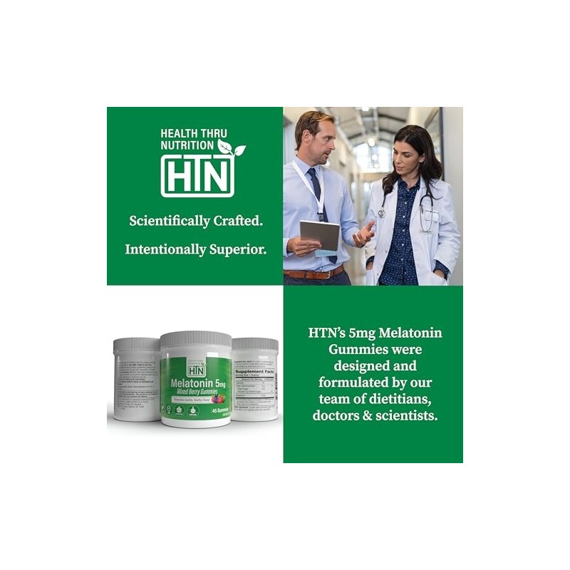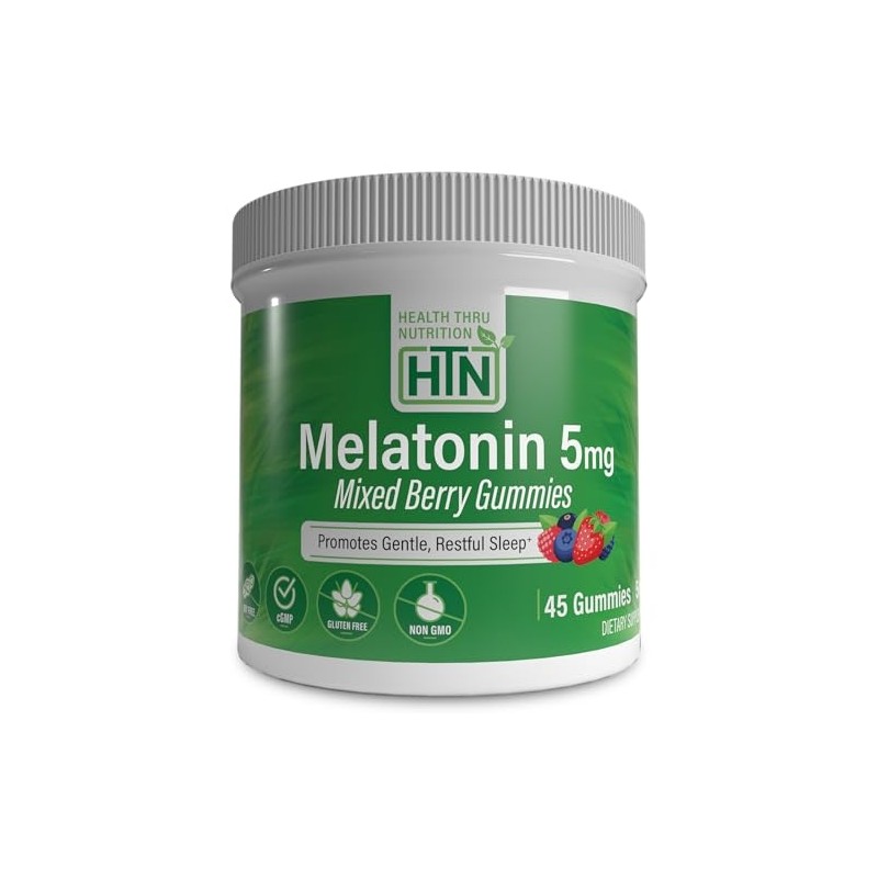 Health Thru Nutrition Melatonin 5mg Gummies | 45 Count Mixed Berry Flavor with Child-Resistant Cap | Gentle Restful Sleep Support Supplement | Non-GMO, Gluten-Free, Vegan-Friendly