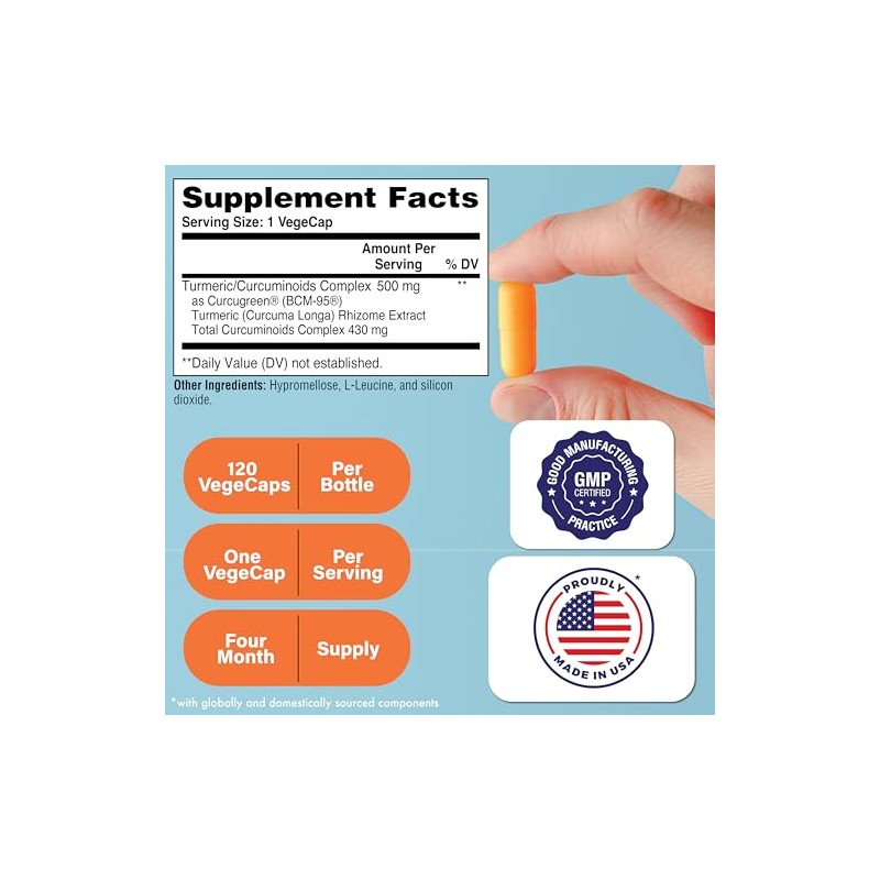 Acerca de este artículo Con BCM-95: la curcumina más bio-disponible del mundo, período; 18 años de seguridad del cliente y más de 54 patentes y presentaciones internacionales; a menudo imitada pero nunca replicada Potente: 430 curcuminoides totales en cada vegecap apto para veganos proporcionan una disponibilidad 700% mejor que la curcumina estándar del 95% Beneficios investigados: más de 70 estudios publicados en todo el mundo demuestran apoyo a la salud de las articulaciones, inflamación, cognición, salud cardíaca y más Calidad, seguridad, integridad: las creencias fundamentales de HTN nos guían a empoderar a las personas para vivir vidas más saludables proporcionando productos nutricionales de calidad superior y sirviendo como una fuente confiable de información nutricional Compromiso: respaldamos nuestros productos y nuestros clientes todos los días; si no estás satisfecho por cualquier razón, háznoslo saber y lo haremos correcto; sin preguntas.