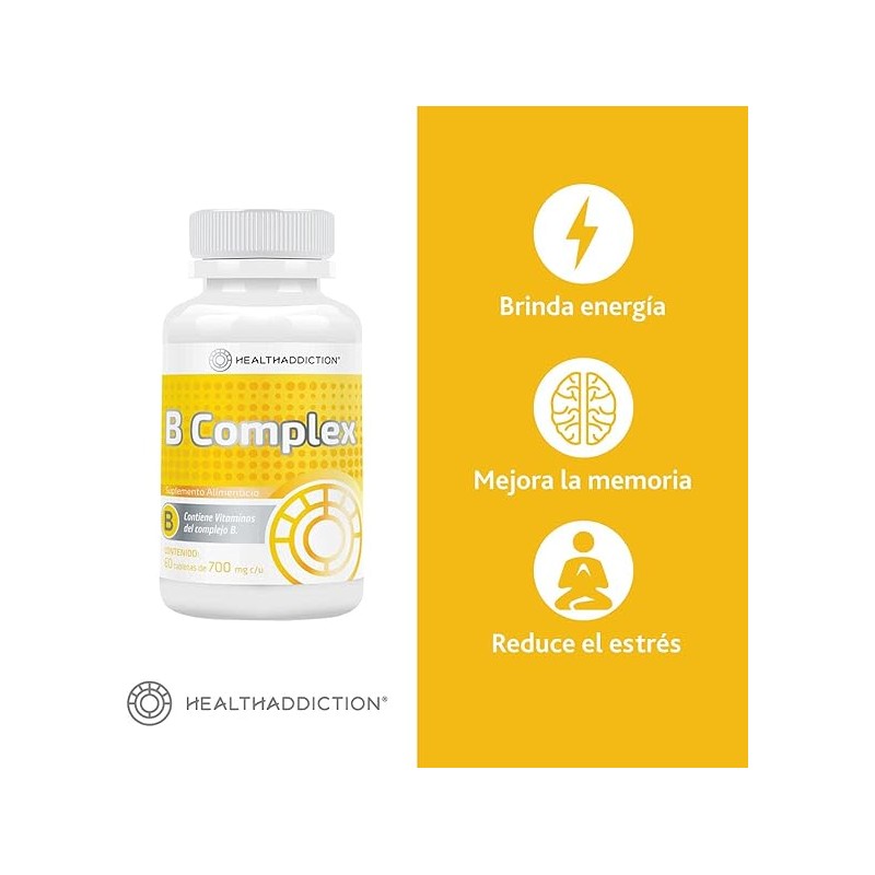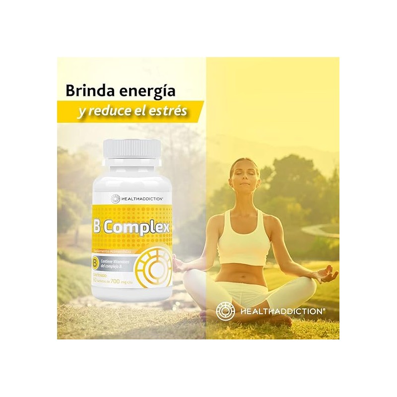 HEALTHADDICTION B Complex - Complejo B de Vitaminas B1, B2, B3, B5, B6, B7, B9, B12-60 Tabletas de 700mg para Energía y Bienestar