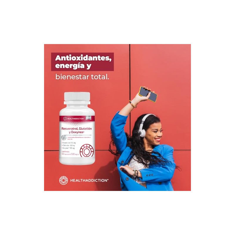 - Formulación única con 300 mg de Resveratrol, 100 mg de Glutatión y 100 mg de Oxxynea para un apoyo antioxidante integral que protege las células contra el estrés oxidativo.