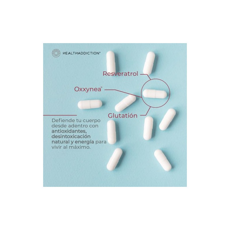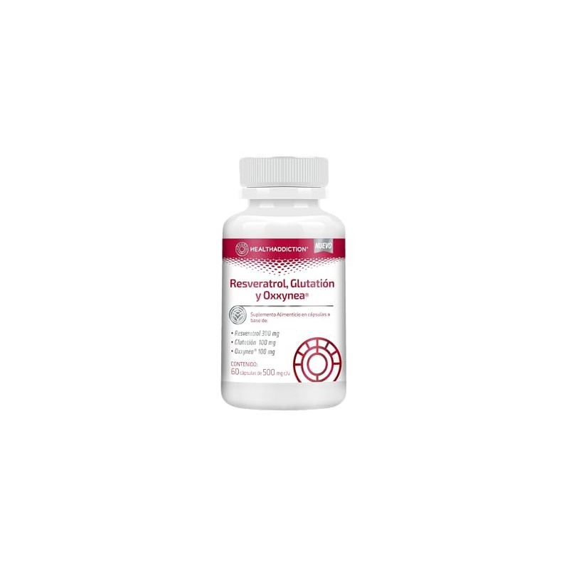 HEALTHADDICTION - Resveratrol, Glutatión y Oxxynea 500 mg - Suplemento Antioxidante con Polifenoles para Bienestar - 60 Cápsulas