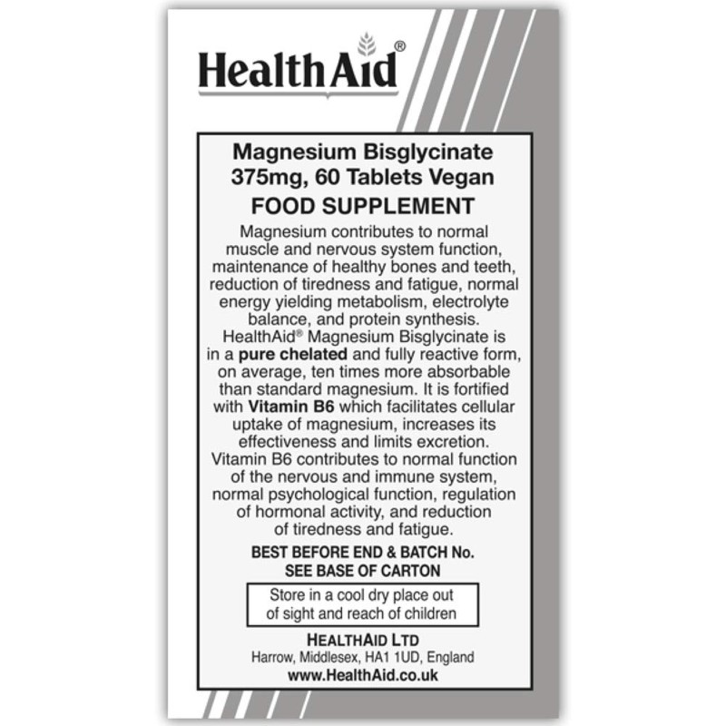 HealthAid Magnesium Bisglycinate Vegan Tablets, 60-Count