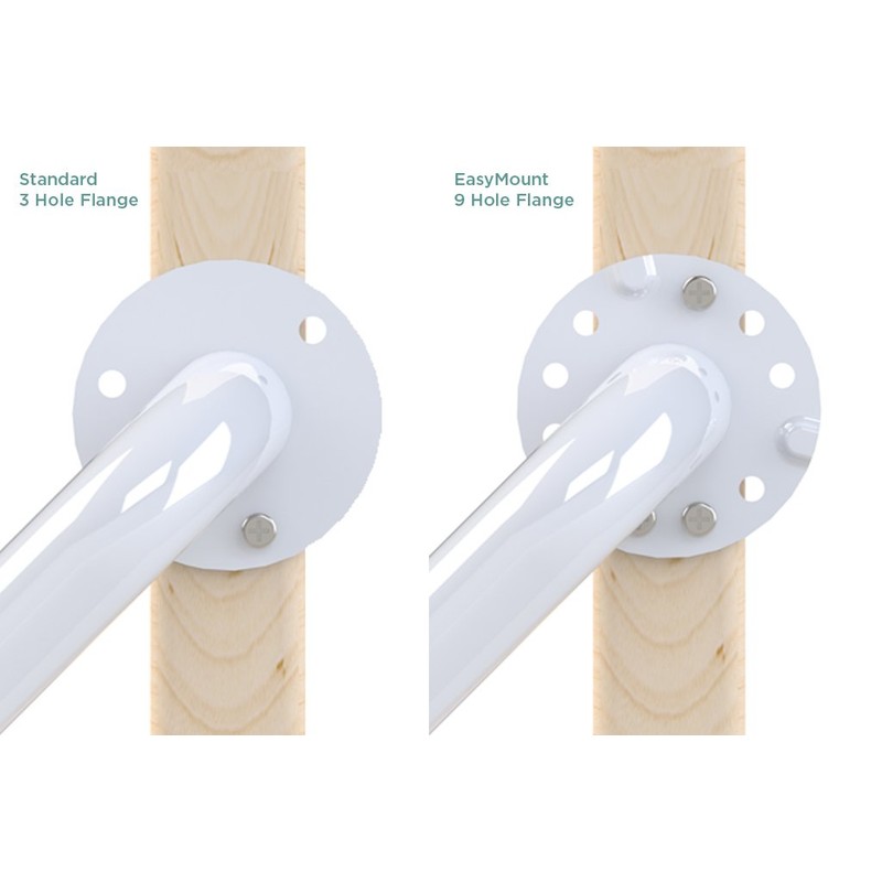 - Outside flanges feature HealthCraft's Easy Mount flanges for greater versatility during installation. Grab bar supports up to 500lbs; Made from rust resistant, #304 stainless steel