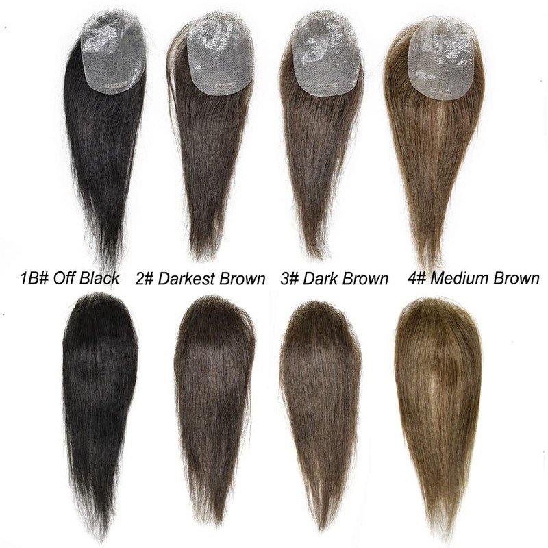Healthlif Ultra Thin Skin V-Looped Glue On Bald Spot Hair Patch Virgin Hair Toupee For Men Non Surgical Hair Replacement For Bald Spot Natural Looking Transparent Skin Patch 14" #2 DARKEST BROWN