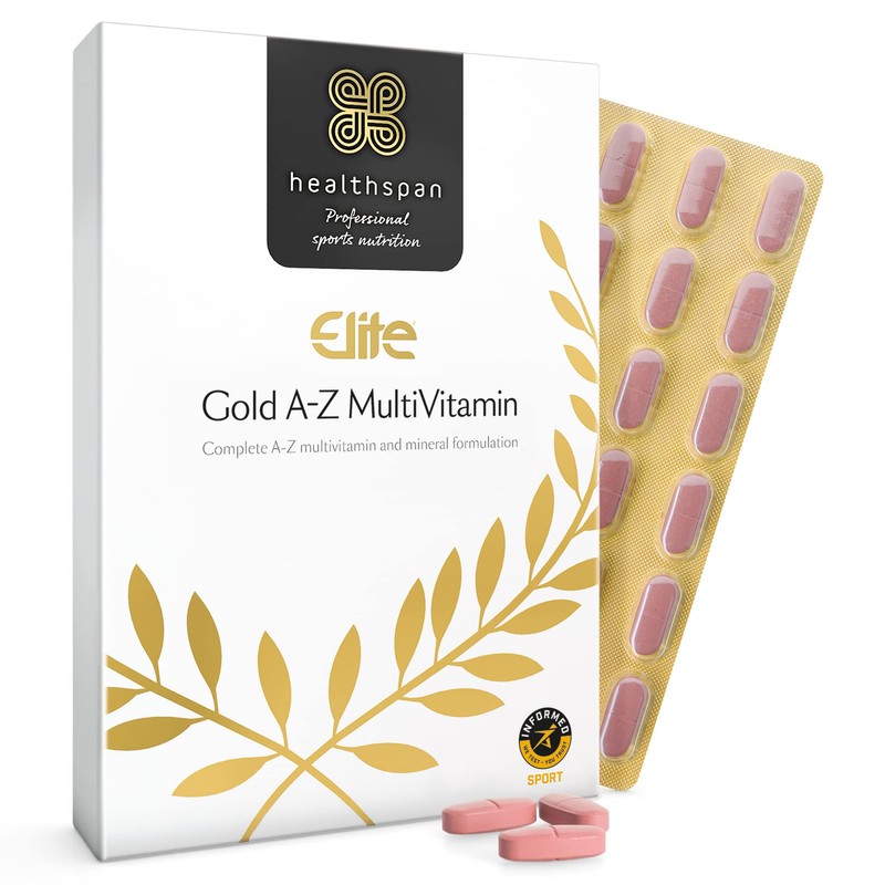 Healthspan Elite Gold A-Z Multivitamin (4 Months’ Supply) | 27 Essential nutrients with Vitamin B Complex with Iron, Selenium & Zinc | All Blacks Official Partner | Informed Sport Accredited | Vegan