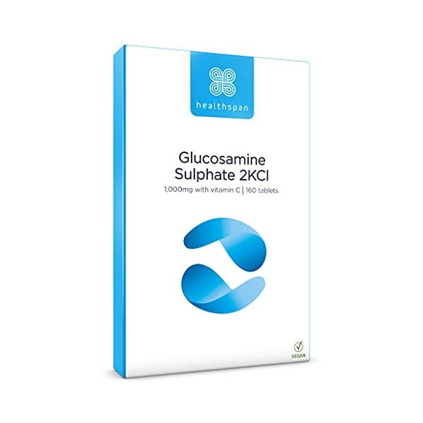 Healthspan Glucosamine Sulphate 2KCI 1,000mg (10 Monthsâ Supply) | Sustainably sourced Plant-Based glucosamine to Support Your Joints | 591mg Glucosamine Base with 20mg Vitamin C | Vegan