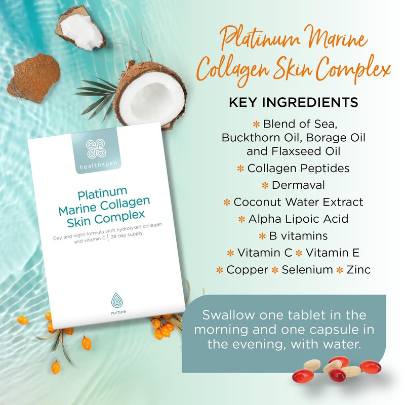 - WHY CHOOSE HEALTHSPAN? They've combined a source of hydrolysed marine collagen with Dermaval, an extract of 9 plant-based superfoods, and CocoMineral, a coconut water extract. Borage, flaxseed and sea buckthorn oils provide beneficial fatty acids omega 3, 6, 7 and 9. Finally, they've included a range of micronutrients, such as B vitamins, vitamin C, selenium, copper and zinc, proven to help maintain healthy skin and protect cells from oxidative stress.
