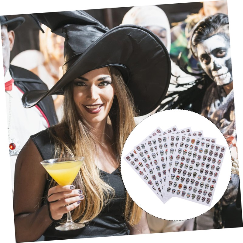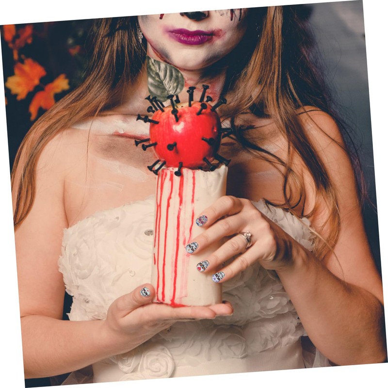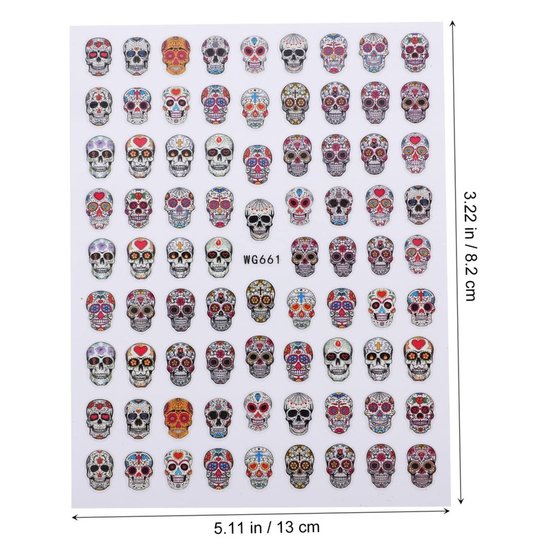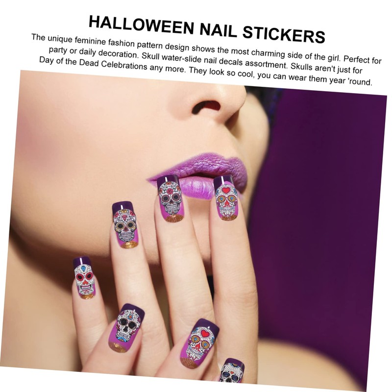 nail skull sticker Easy to use, work great on nails, they will stay on for a long time and will not peel off your nails, enjoy the charm they bring to your nails.Halloween nail decals Easy removing, change the pattern at any time.Halloween nail stickers Easy to apply on natural or artificial nails.nail art sticker Suitable for professional use or home use