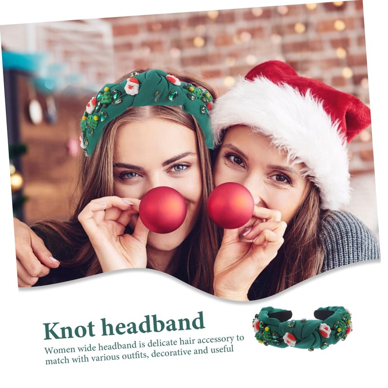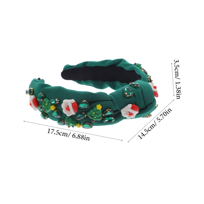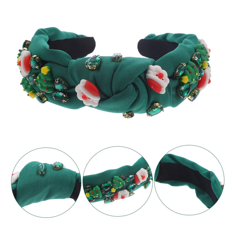 - The wide twisted headband is safe and comfortable to wear, fine workmanship, with rhinestone decor, Xmas tree charm and Santa charm xmas knot headband.