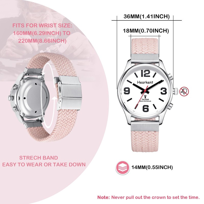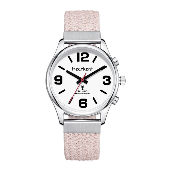 Hearkent British English Talking Watch for Women with Large Numbers Self-Setting for Visually impaired, Blind or Elder People (Nylon Pink)