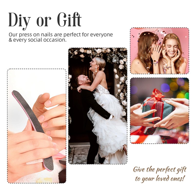 - 【Wide Usage】 These short press on nails are designed with length elegant shape and a classic fake nails to make you stand out and look charming. Perfect for daily home manicures, weddings, proms, parties, birthdays, dates, and other special occasions. They also make an ideal gift for birthdays, valentine's day, halloween, christmas, and more. You can customize your own press-on nail art to suit your personal style