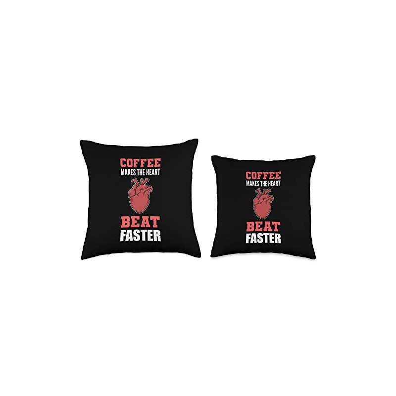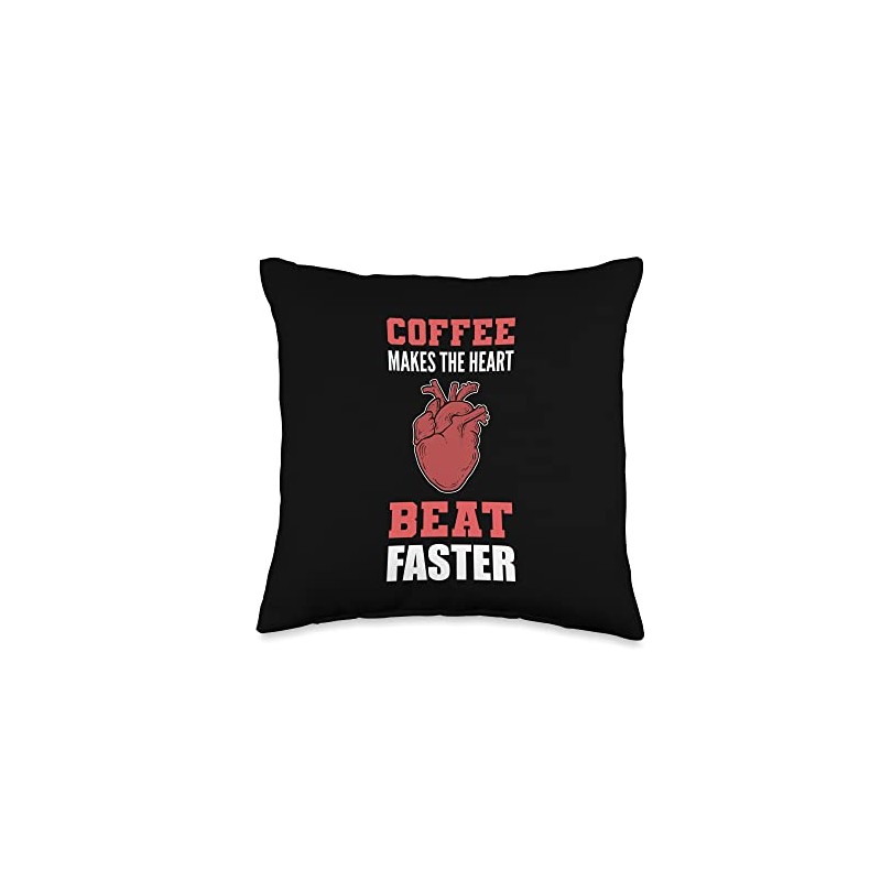 Heart Beat Faster Decaf, Macchiato, Cappuccino Heart Beat Faster Caffeine Lover Throw Pillow, 16x16, Multicolor
