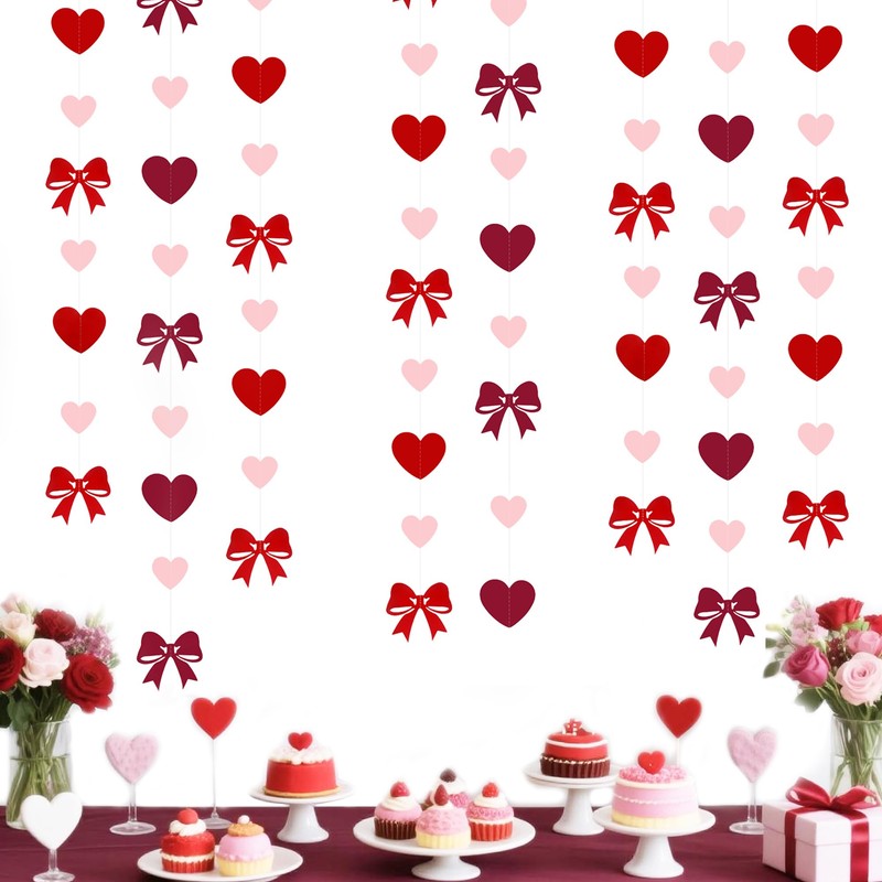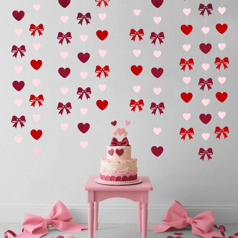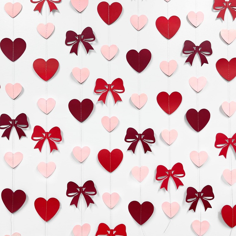 Heart Bow Decorations Burgundy Red Pink Heart Bow Hanging Garland Streamer for Anniversary Birthday Valentines Bachelorette Wedding Baby Shower Bridal Shower Engagement Hen Party Decorations Supplies