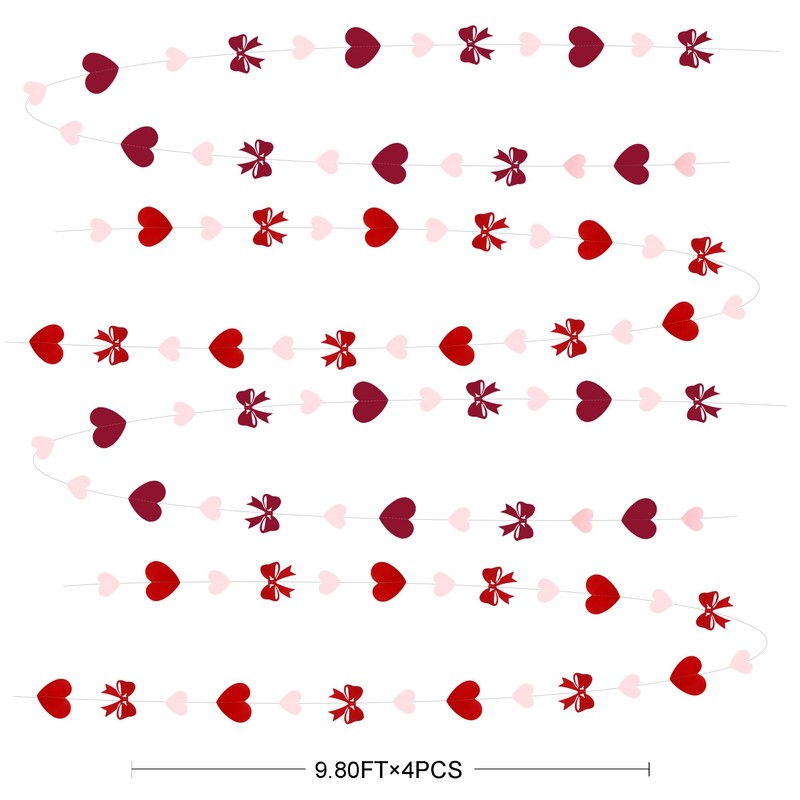 - Environmental Material-Our burgundy heart bow streamer garland are made of high quality card stock,carefully hand-made and machine-sewn together with thread.durable and reusable.