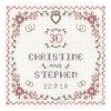 - Pearl anniversary with exquisite floral borders in dusky pinks and an outer border in a variegated thread to give a subtle change of colour