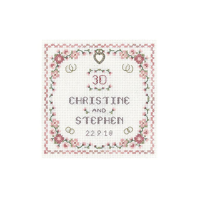 Heart Pearl Anniversary Sampler with Gold Heart Charm for a 30th Wedding Anniversary - Complete Cross Stitch kit on 14 aida