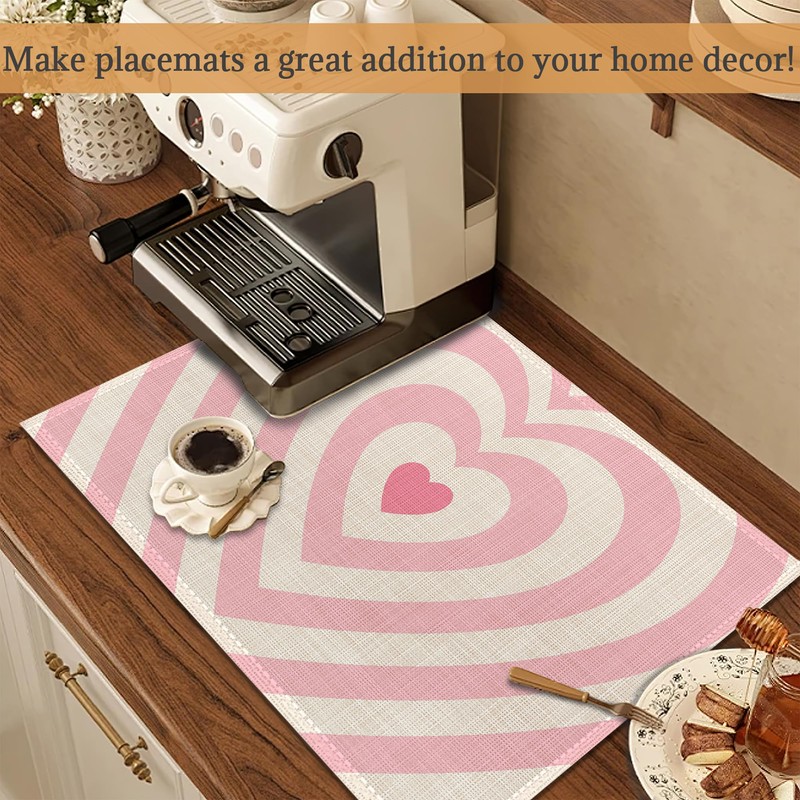 Heart Pink Groovy Placemats Set of 6 Place Mats for Kitchen Table Washable Farmhouse Linen Table Mats Dining Decoration 12x18 Inch