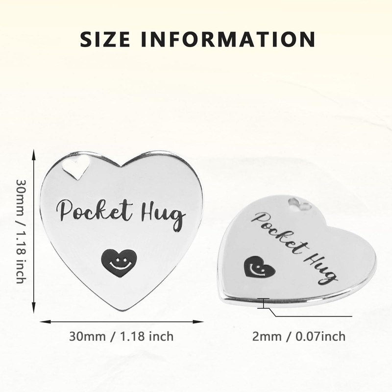 - 【PACKAGE AND SIZE】 1 x Heart Pocket Hug Token, Token Size: 1.18"(L) x 1.18"(W) x 0.07"(H)