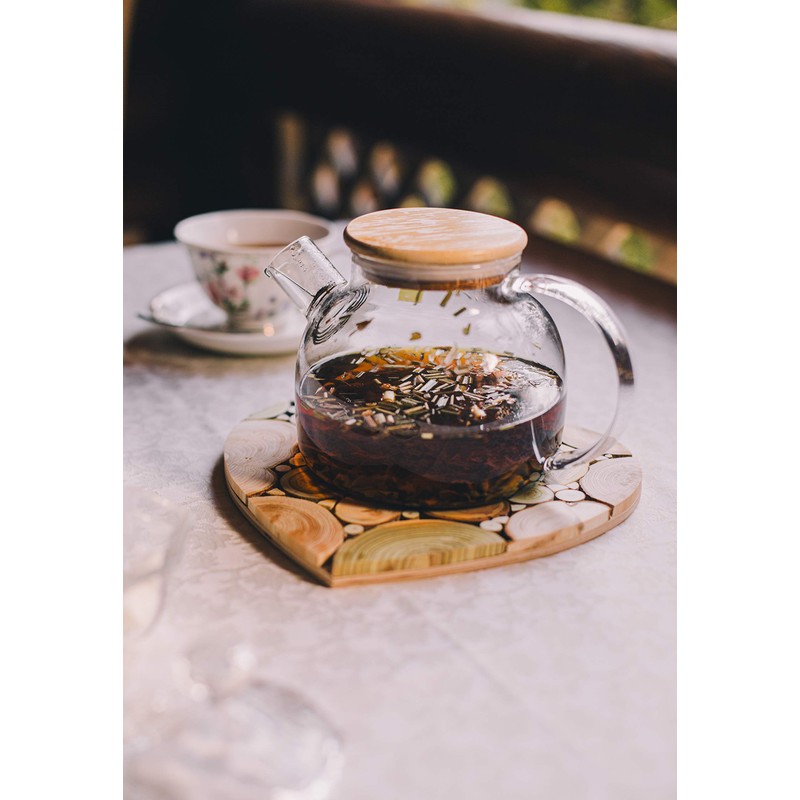 - This lovely heart shape trivet is made of 8 different sorts of wood, has a natural smell and looks great. Beautiful decorative work of art in your house.