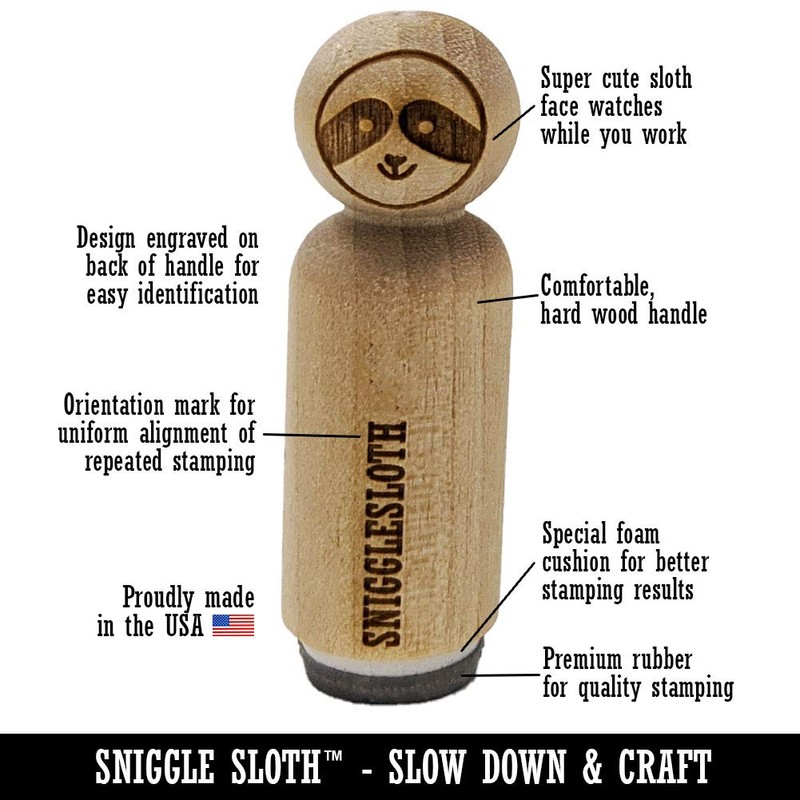 - DIY FUN - You've never seen a wooden stamp handle quite so cute or useful. The wood handle features our Sniggle Sloth mascot, the stamp design for easy identification and an alignment mark to make sure your stamped image is aligned the way you want it.