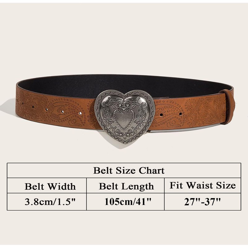 - Heart Belt length:105cm/41" suit for 27"-37" waist; belt width: 1.5".Women's vintage western turquoise buckle belt sizes are all adjustable