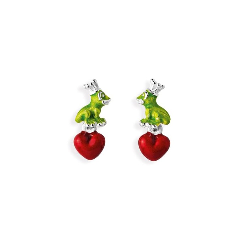 • High-quality materials: these enchanting frog stud earrings with movable red hearts are made of 925 sterling silver and approx. 17mm high and 7mm wide. The frog with silver crown is and the hearts on it are finished with fire varnish