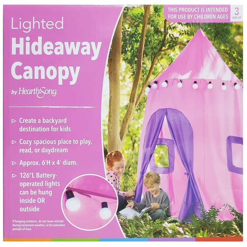 HearthSong 6-Foot Lighted Hideaway Canopy and Backyard Play Space Pink